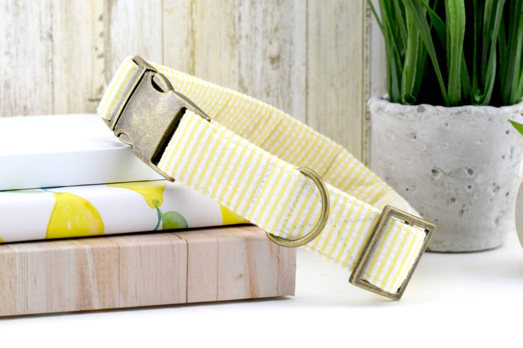 Seersucker Dog Collar - Yellow & White